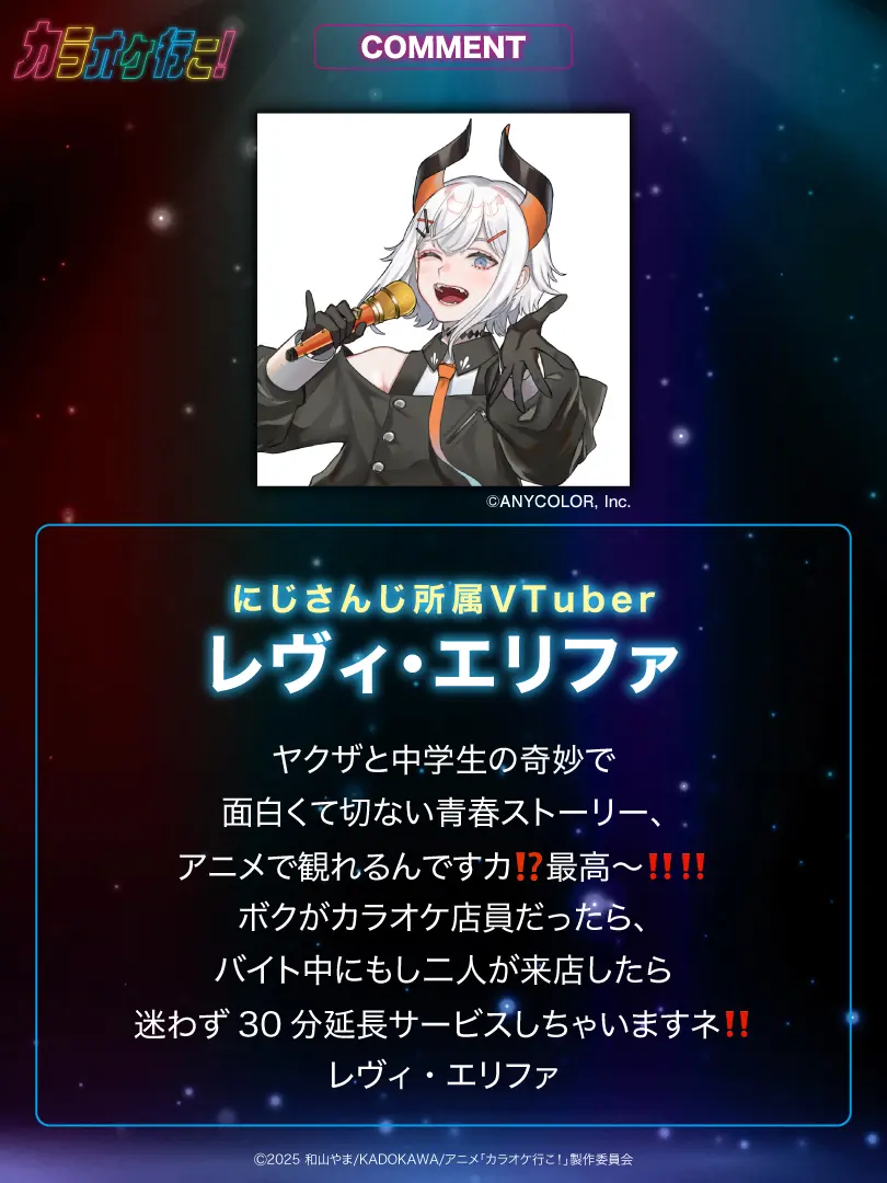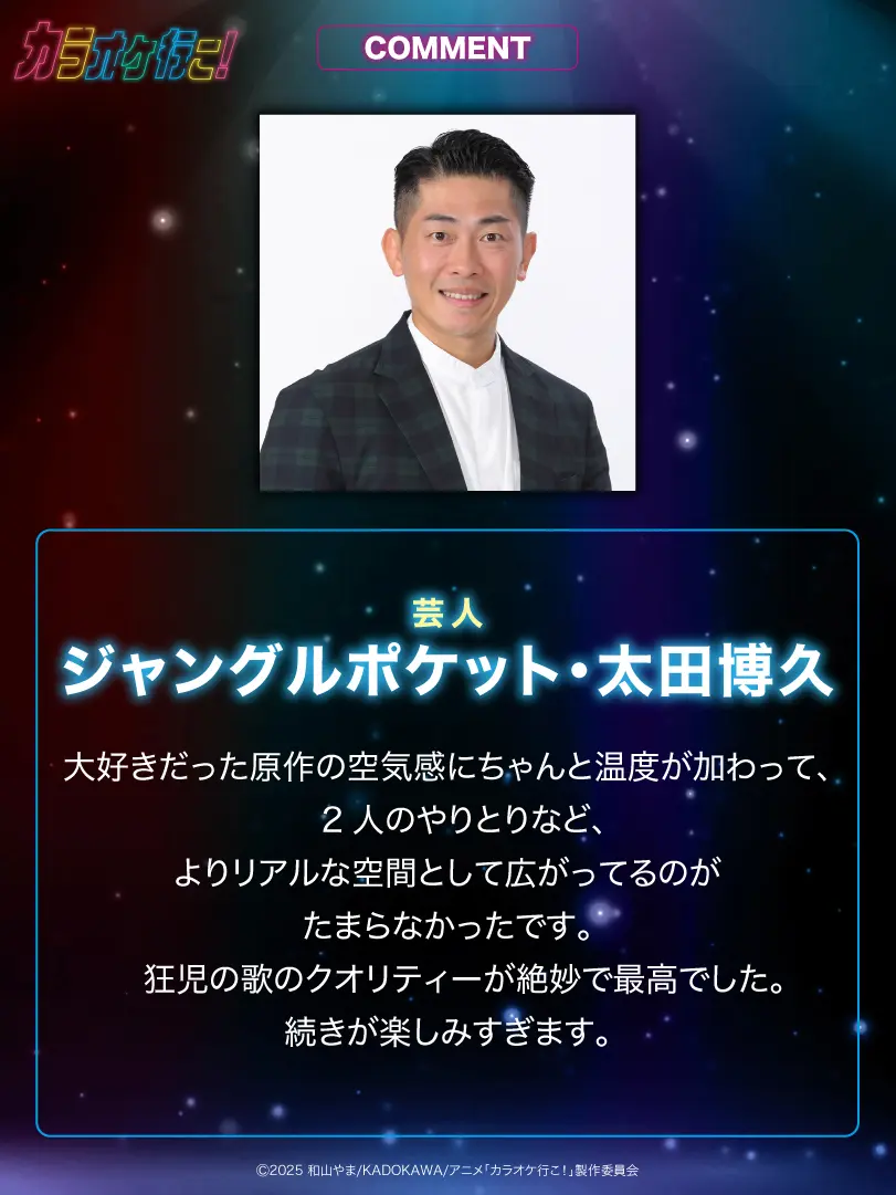 豪華キャスト陣がカラオケを楽しむ特別動画“『カラオケ行こ!』カラオケ大会! 堀江瞬・小野大輔のほか、ヤクザキャラを演じる上田燿司・野津山幸宏が出演。 出演キャストがカラオケで名曲を歌い上げる姿を是非チェックしてください。 出演:堀江 瞬、小野大輔、野津山幸宏、上田燿司